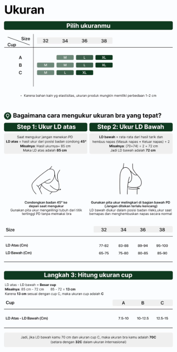 Dikarenakan kelebihan kain pada produk ini yang memiliki tingkat elastisitas tinggi, terdapat kemungkinan selisih ukuran sekitar ±1-2 cm. Hal ini merupakan karakteristik alami material dan tidak termasuk dalam kategori cacat atau ketidaksesuaian kualitas.
