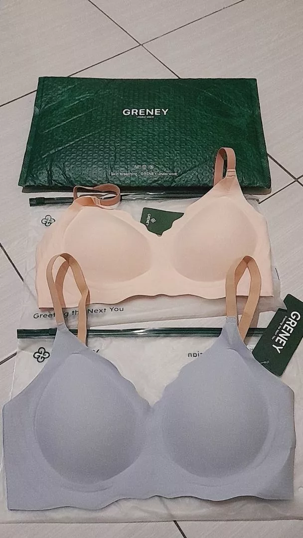 Iseng beli bra Greeney cz fyp mulu ,,dan ternyata bagus bahannya lembut banget dipegang juga dingin , warna² nya pastel lucu , belum dicoba mau di cuci dulu semoga aja cocok kalo nyaman dipake biar nanti CO lagi.